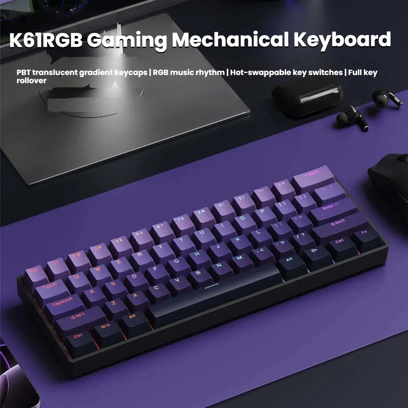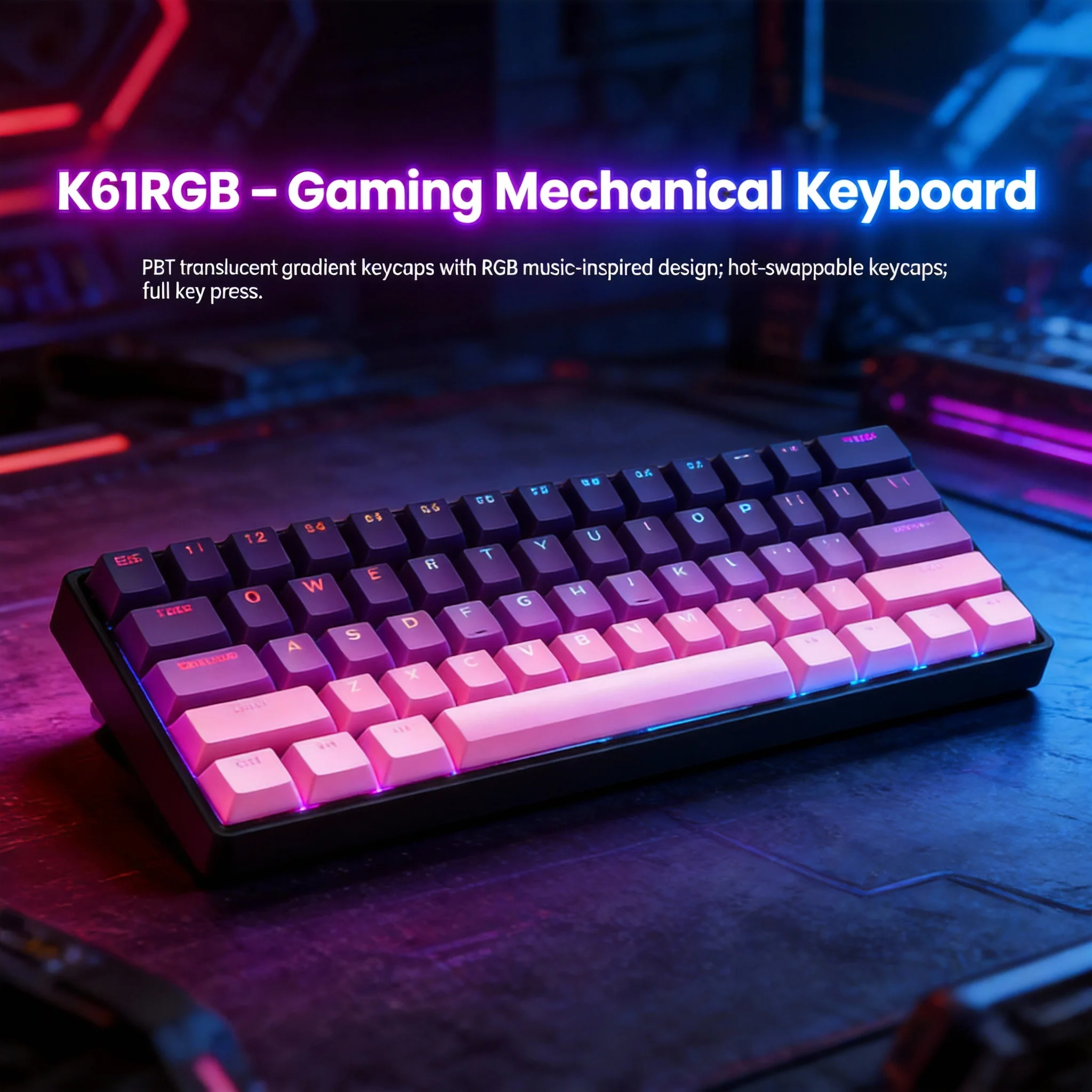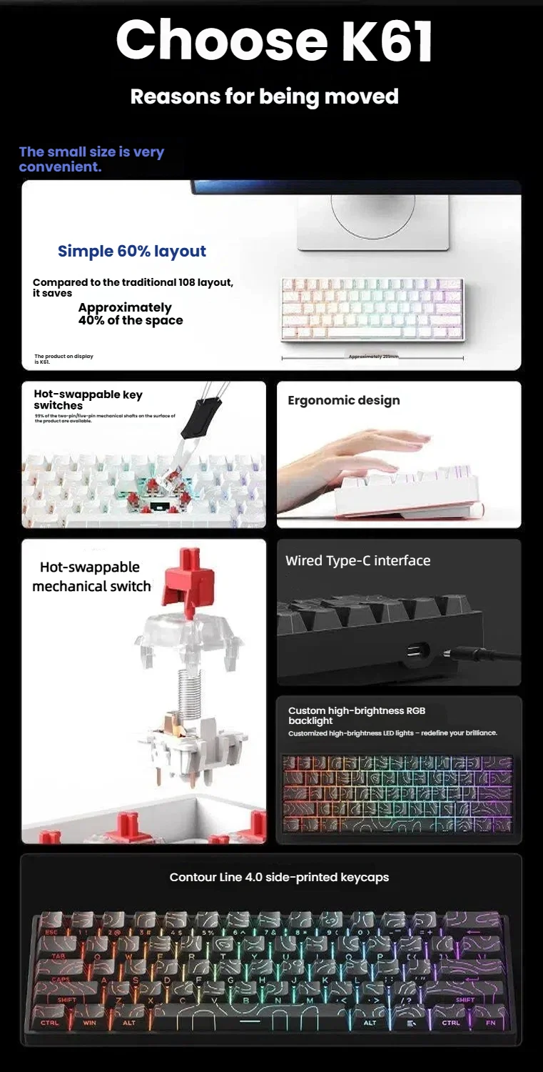 60% Wired Mechanical Keyboard – 61-Key RGB Mini Layout for PC & Laptop