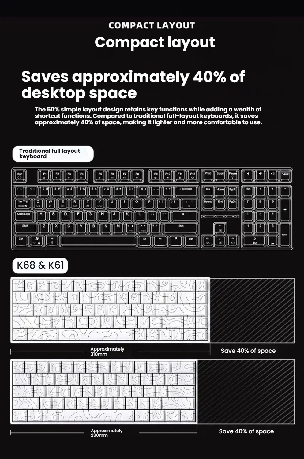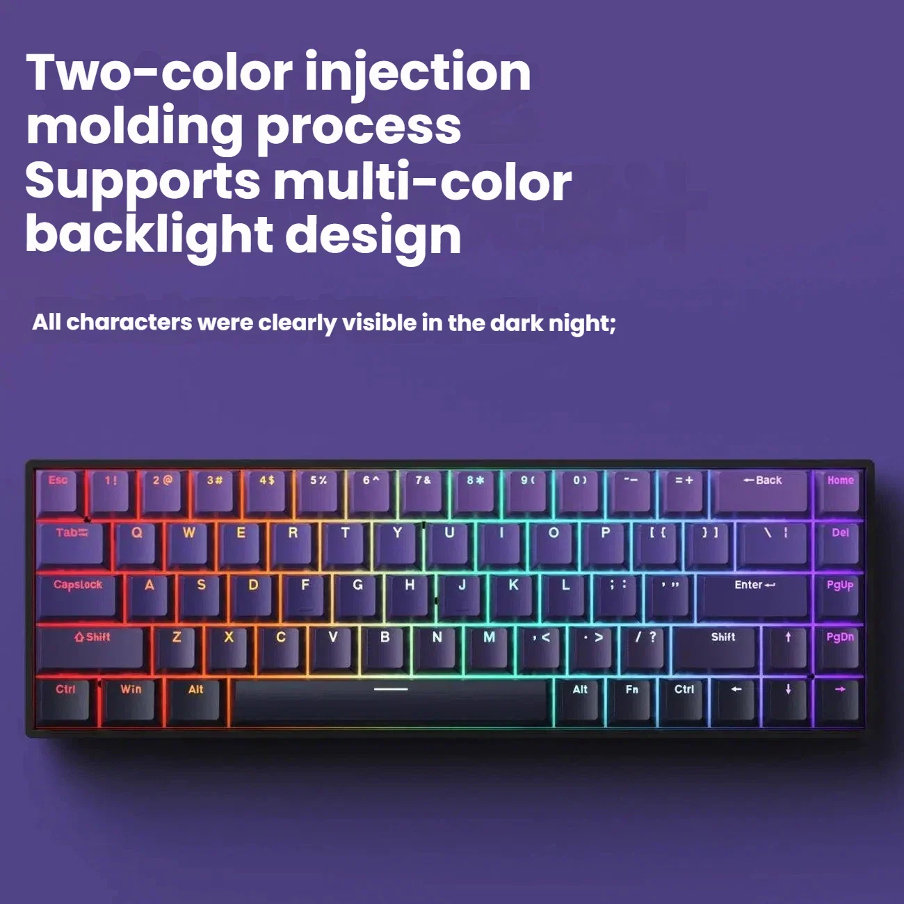 Compact yet powerful, this 60% wired mechanical keyboard features 61 keys with vibrant RGB backlighting. Its mini layout saves desk space without compromising performance, making it perfect for gaming and daily typing on PCs or laptops. Durable design and smooth key response ensure a premium gaming experience.